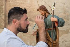 vestizione, fonde gusto estetico e attenzione storica nella creazione in cartapesta di figure sacre